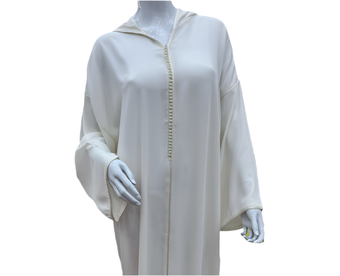 Élégante et intemporelle, jellaba blanche à capuche séduite par sa sobriété et sa finesse.